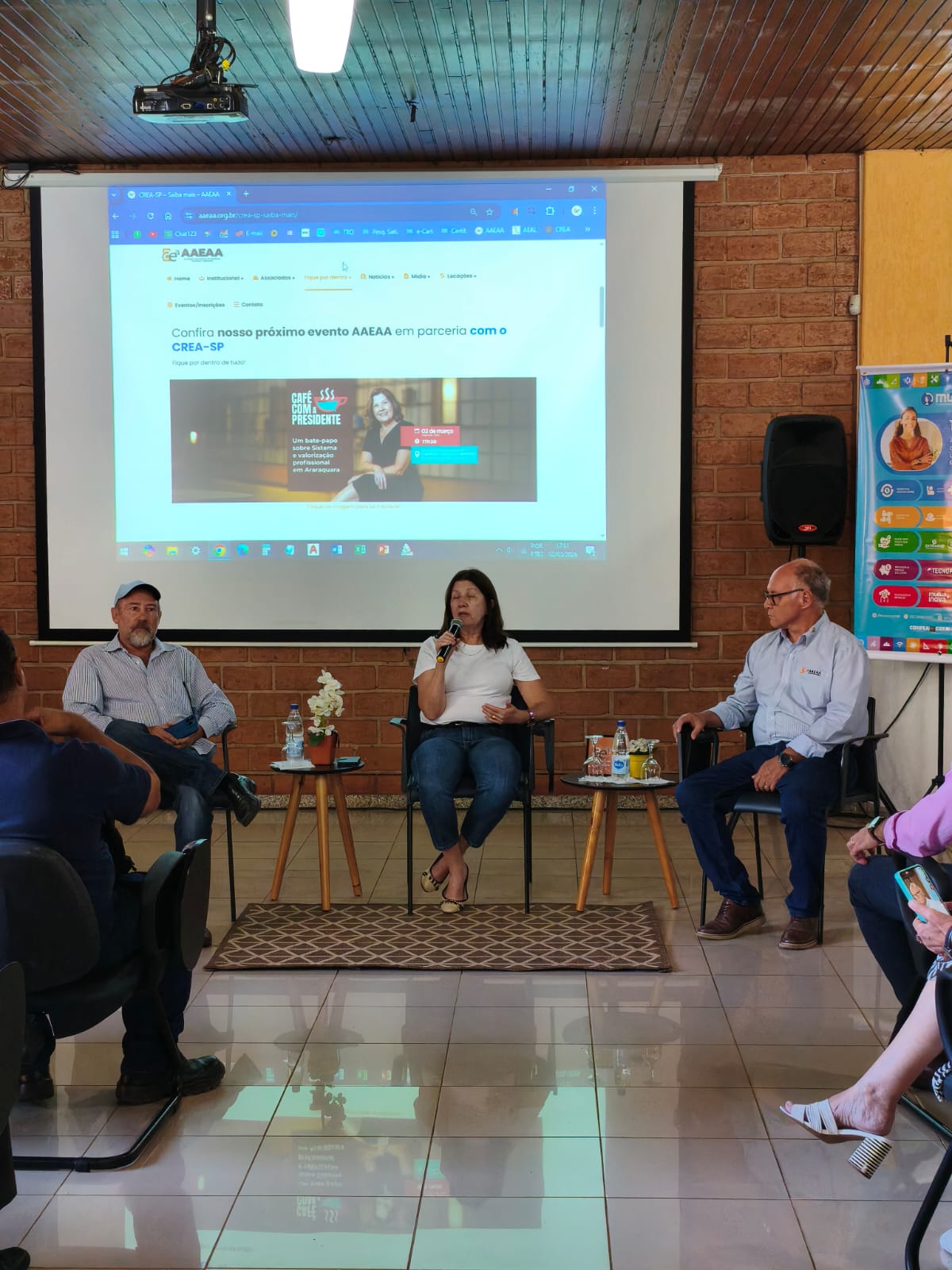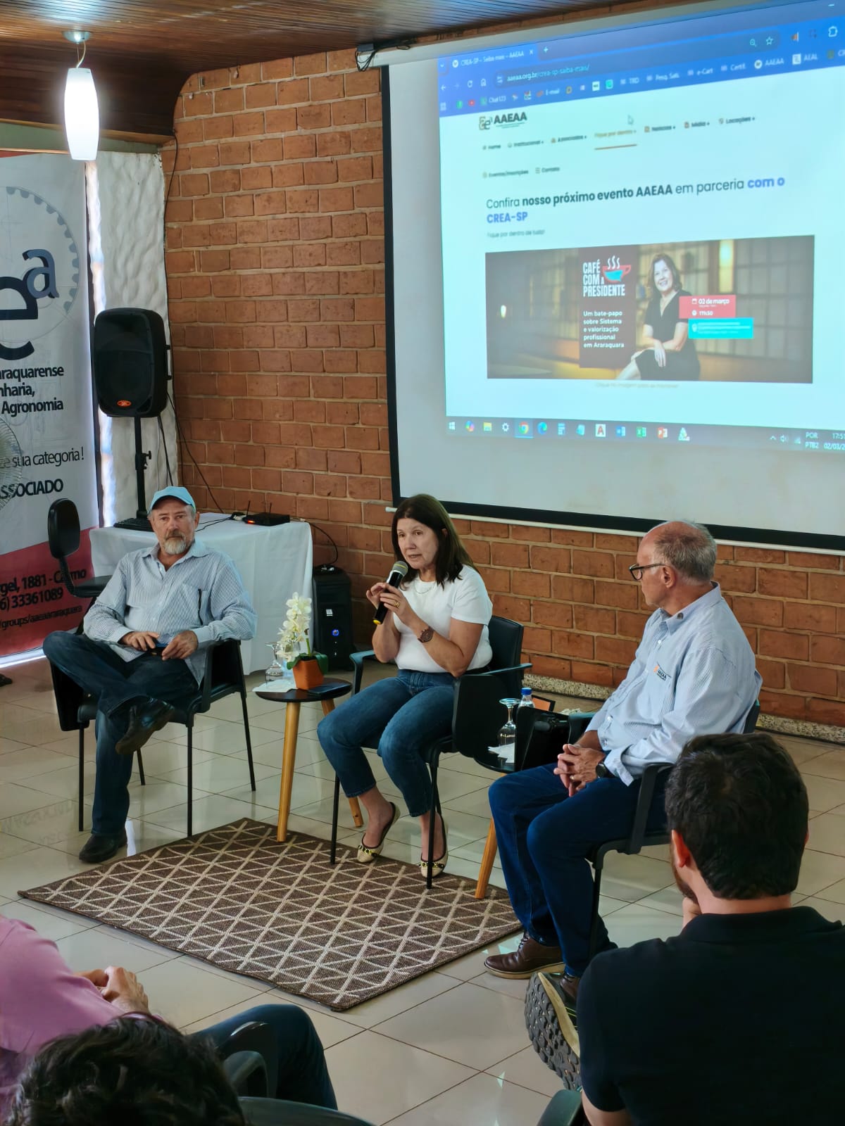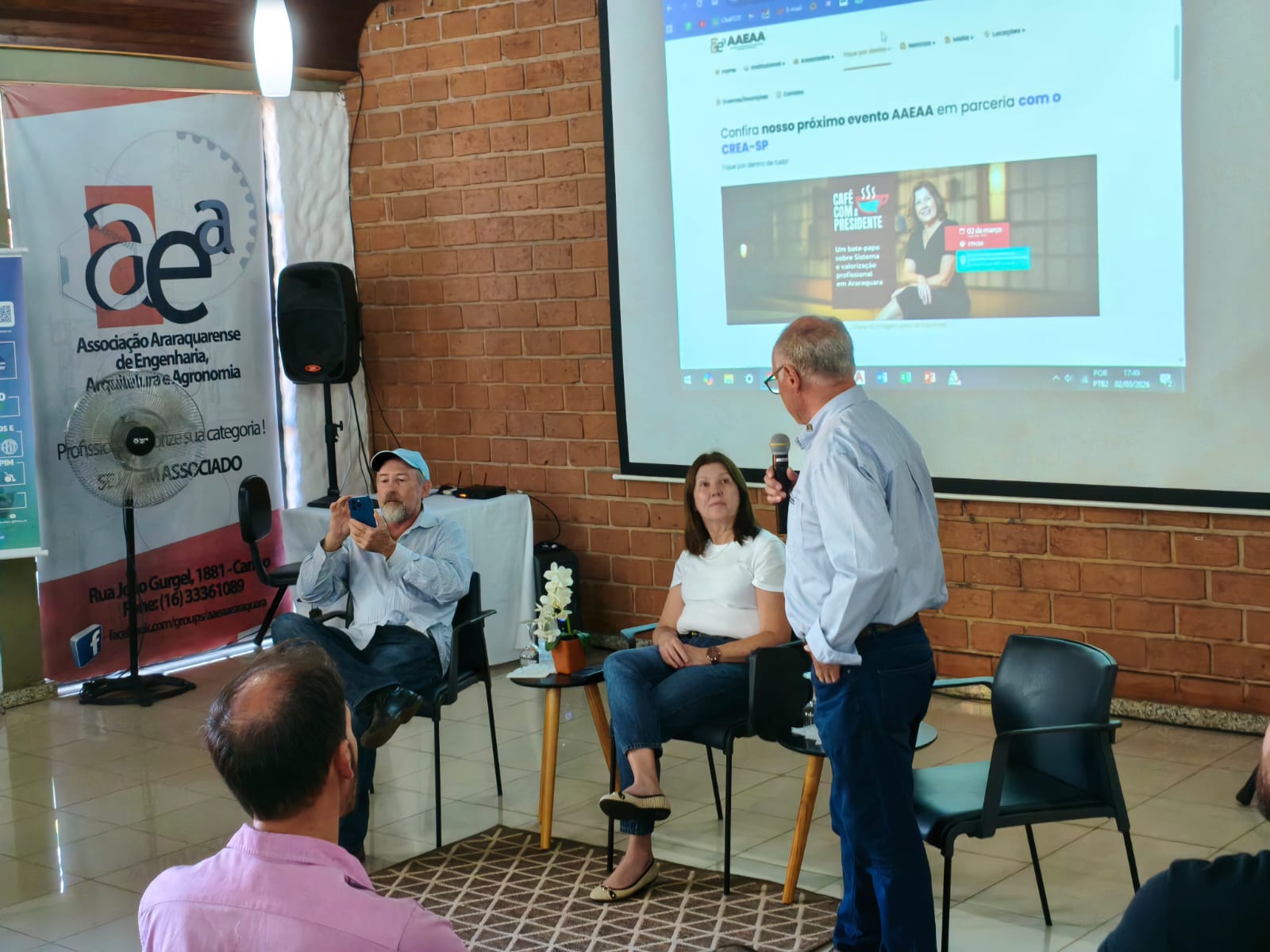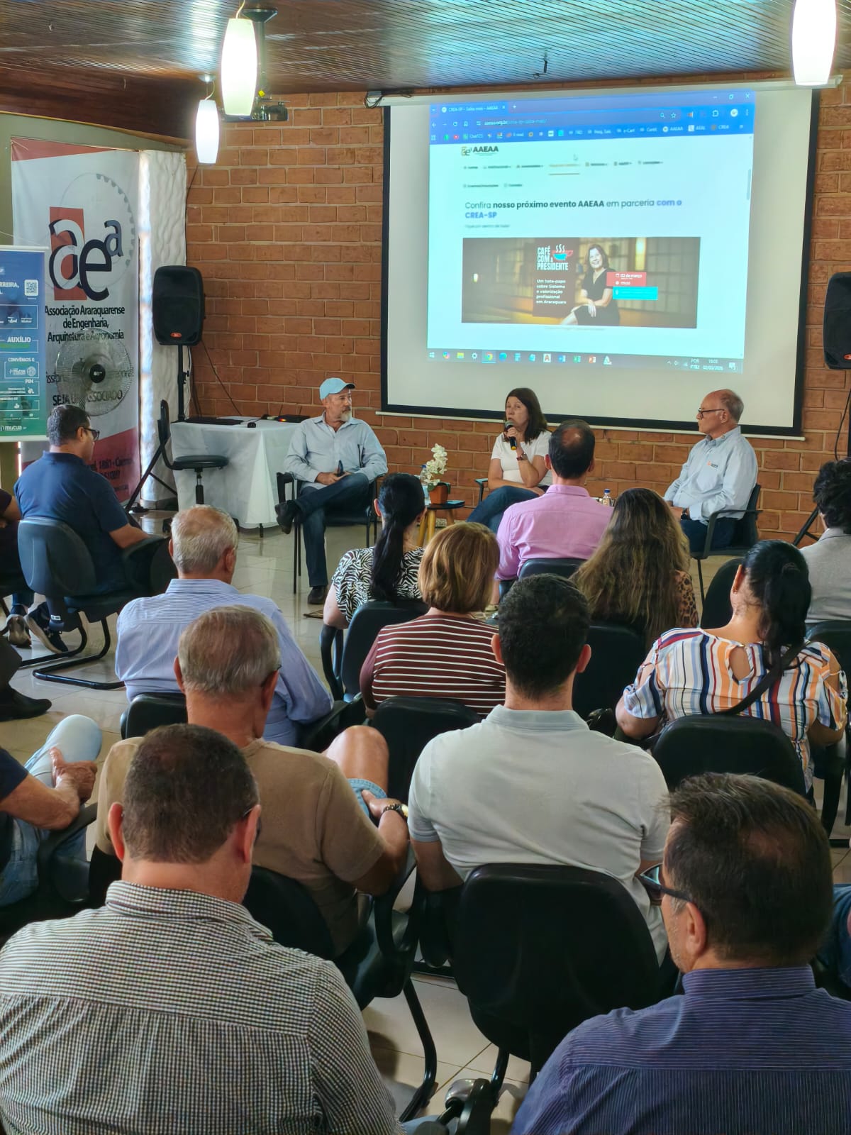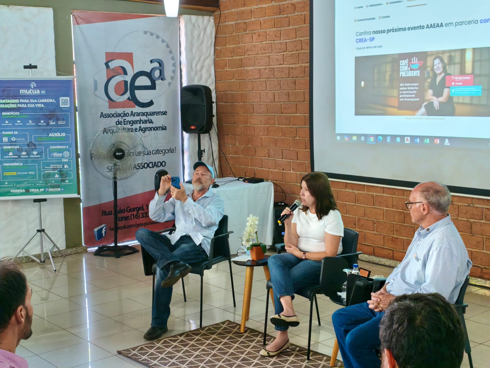 A Associação Araraquarense de Engenharia, Arquitetura e Agronomia (AAEAA) recebeu, na tarde do dia 02 de março de 2026, a presidente do CREA-SP (Conselho Regional de Engenharia e Agronomia do Estado de São Paulo), a Engenheira Civil Lígia Mackey. O "Café com a Presidente" , teve início às 17h30 em nossa sede social, com o propósito de estreitar os laços entre o Conselho e os profissionais, debatendo temas essenciais para o mercado de trabalho da engenharia paulista.